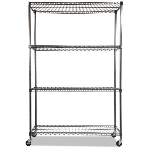 Ideal storage solution for commercial use. Snap-together design assembles in minutes. Strong welded wire construction provides exceptional strength and stability. Open design allows air circulation and reduces dust build-up. Finish on surface prevents corrosion in wet, humid environments. Safeguards for freezer, restaurant, food service, indoor/outdoor, or other wet/dry storage requirements.Package Includes: (4) Shelves; (4) Posts; (4) Casters (2 locking); Shelf Clips