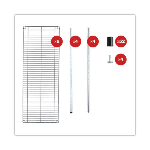 NSF Certified 6-Shelf Wire Shelving Kit, 48w x 18d x 72h, Silver