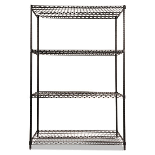 NSF Certified Industrial Four-Shelf Wire Shelving Kit, 48w x 24d x 72h, Black