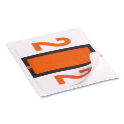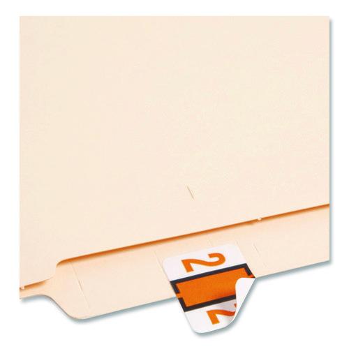 Keeping files organized couldn't be easier with these pre-printed numeric labels. Featuring a color-coded wraparound design, almost anyone can read them at a glance, from either the front or the back. Clear lamination not only prevents the smudging that's typical with regular handling, but it also prevents cracking along the center fold line to provide added durability. The available color selection is designed specifically to be compatible with end tab filing systems, where the bar-style format is the norm. Convenient dispensing box makes application a snap.