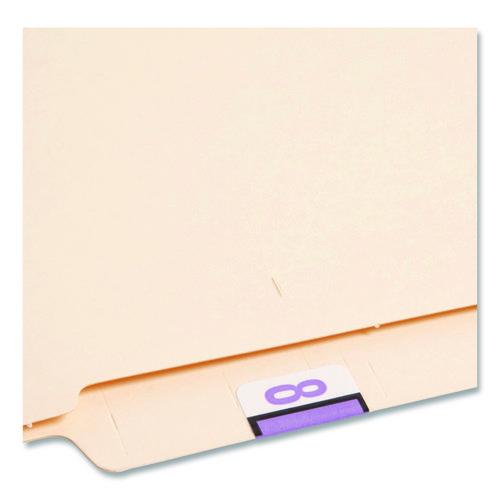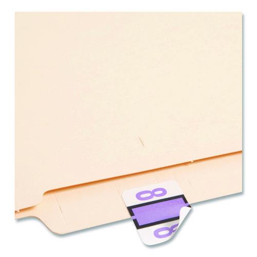 Keeping files organized couldn't be easier with these pre-printed numeric labels. Featuring a color-coded wraparound design, almost anyone can read them at a glance, from either the front or the back. Clear lamination not only prevents the smudging that's typical with regular handling, but it also prevents cracking along the center fold line to provide added durability. The available color selection is designed specifically to be compatible with end tab filing systems, where the bar-style format is the norm. Convenient dispensing box makes application a snap.