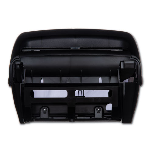 Sanitary touchless dispensing prevents germ spread. Just tear off towel and sensor activates to present another! Portion control provides 10" length every time. Dispenses all qualities of paper without jamming. Holds rolls up to 8" wide x 8" dia. and one 4" stub roll. Automatic transfer device allows complete usage of stub roll to eliminate waste. Operates on four D alkaline batteries (sold separately); battery usage equivalent to dispensing 100, 800-ft. rolls. Impact-resistant plastic.