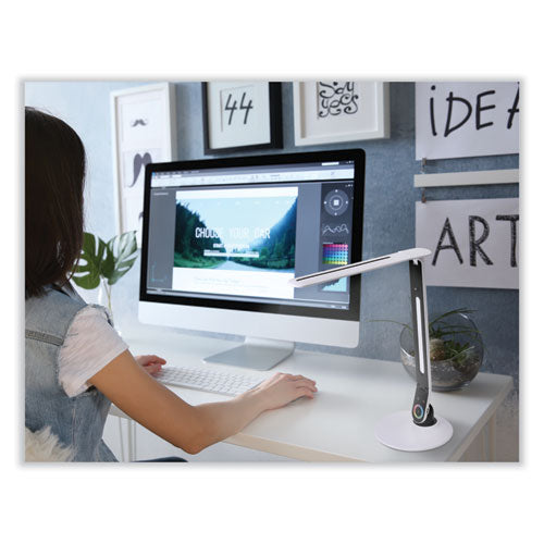 Feeling a bit blue? Let it show! With a one-of-a-kind look, this desk lamp offers stunning light that changes color! It features a color changing strip activated via the touch-sensitive color selection wheel. The dimmer function even lets you select the brightness level out of three levels. Charge your phone or tablet right from your desktop, too! The included USB port provides the ability for you to easily charge your most needed devices.Note: This is a non-returnable item.
