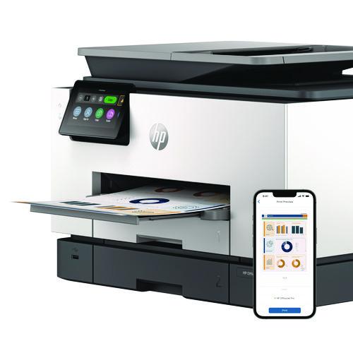 With the HP OfficeJet Pro 9130b All in One Printer you can easily deploy, integrate, and set up your fleet of printers with the Page Description Language support and HP Universal Print Driver. Plus, stay in control and customize each printer according to your company's guidelines with customizable functions. Always ready for high volumes, get an HP OfficeJet Pro printer equipped with two 250-page input trays.Package Includes: HP 936 Setup Black and Color Cartridges; Regulatory Flyer; Ink Caution Flyer; Power Cord; Setup Poster; Reference GuideNote: This is a non-returnable item.