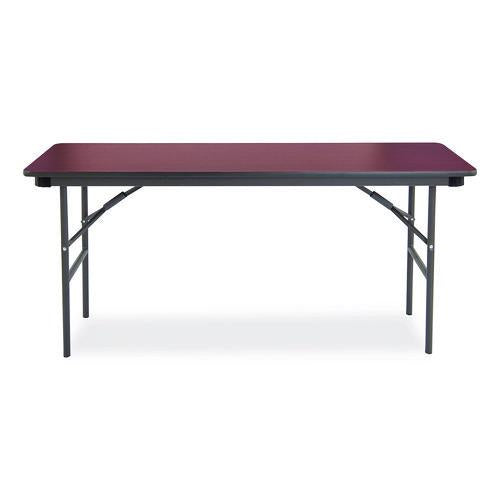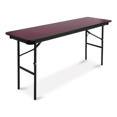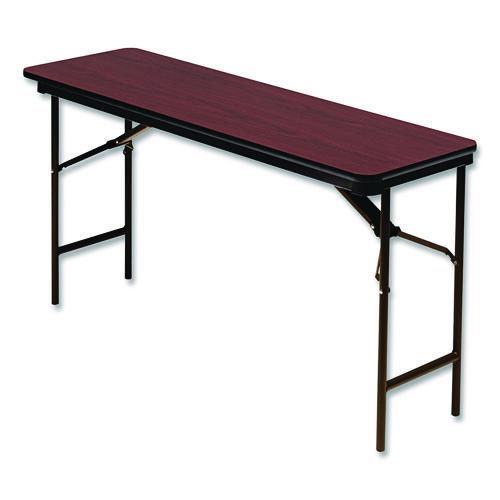 OfficeWorks Commercial Wood-Laminate Folding Table, Rectangular, 60" x 18" x 29", Mahogany Top, Brown Base