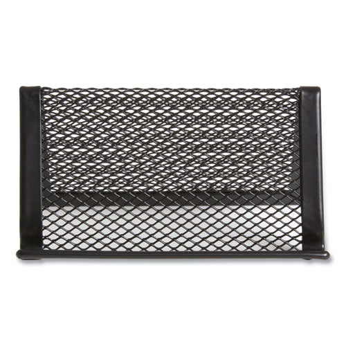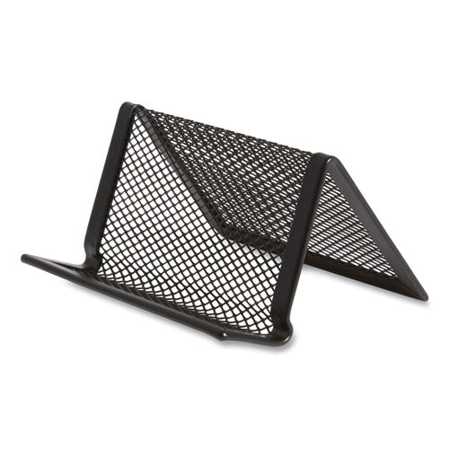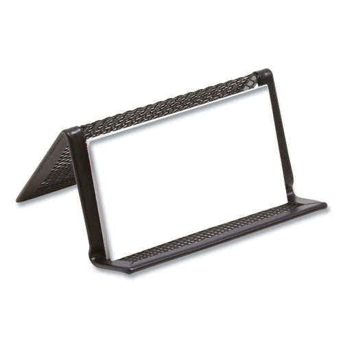 Share contact information with clients and colleagues. Open design makes it easy to access cards. Tilted configuration holds up to 50 cards neatly in place. Features reinforced mesh construction to provide long-lasting use. Flat square-rounded corners add a touch of class to your workspace.
