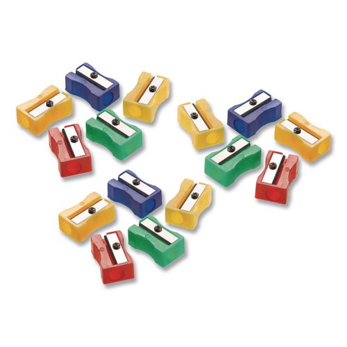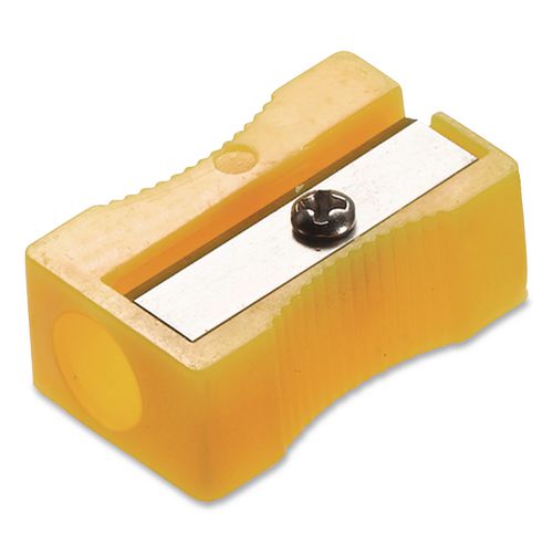Durable plastic casing of this manual pencil sharpener houses a steel blade to get your pencils consistently sharp. Sharpens #2 size pencils only. Compact size allows for easy storage-perfect for tossing into a backpack on the way to school. Assorted colors are sure to brighten up any desk.