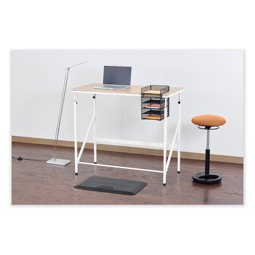 The Onyx™ horizontal hanging storage unit is a wire mesh organizer that easily attaches to a desktop and hangs below it, providing underdesk storage that saves space and time. Features one desktop tray and four underdesk trays for sorting letter-size documents, folders and files. It also has an underdesk pencil tray for storing pens, pencils and other supplies. The hanging storage design keeps your desktop clutter free and pairs well with standing-height or adjustable-height desks or tables. This sleek mesh organizer attaches to surfaces up to 1.75 thick and includes a rubber-headed tightening screw so that it can be securely mounted without damaging the surface. Created with a steel base and powder coat finish for added durability.Note: This is a non-returnable item.