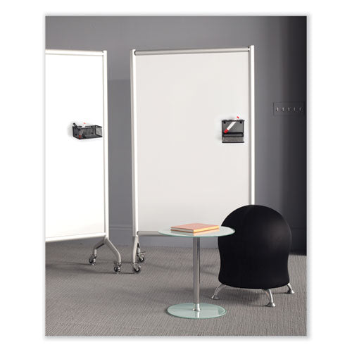 The Onyx™ Mesh Marker Organizer with Basket is a magnetic whiteboard accessory that allows easy storage of dry erase markers and erasers. It includes four stand-up marker holders that fit most standard whiteboard dry erase markers, making it easy to grab a marker when needed and helping to ensure markers are stored upside down so that they last longer. The magnetic back allows for use on whiteboards or any other magnetic surface, and features rare earth magnets that are strong enough to work on magnetic glass marker boards as well as standard magnetic whiteboards. The caddy also includes a basket that can hold erasers, markers or other supplies for easy access. In addition to its magnetic hold, this organizer has the option to be mounted to a wall with use of steel plate (included). The sturdy steel wire mesh construction of this caddy has a black powder-coated finish for scratch and chip resistance. It also includes rolled edges that are smooth to the touch and give a polished appearance. Great for use alongside whiteboards in classrooms, meeting spaces, training areas, conference rooms or offices.Package Includes: Ferrous Metal Wall PlateNote: This is a non-returnable item.