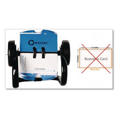 Keep contact information organized and within reach with the Rolodex Open Rotary Card File. With snap-in cards and A-to-Z index dividers, the convenient rotary card file includes everything you need to file and retrieve phone numbers and emails.Package Includes: Includes rotary file plus 250, 1 3/4 x 3 1/4 cards and 24 A-Z index guides.