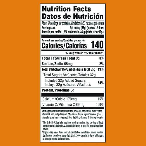 A great way to jump start your day. Made with a refreshingly sweet orange taste, Tang has 100% of your daily value of vitamin C and is a good source of calcium. This Tang Orange Drink Mix comes with a resealable lid to help lock in flavor for lasting enjoyment and simple preparation. Each 72 oz container makes 22 quarts of orange flavored drink, so there is enough for the whole family to enjoy. To prepare, simply pour the powdered orange drink mix into a plastic or glass pitcher, add water and stir. Start your day off right with the refreshing taste of Tang.Note: This is a non-returnable item.