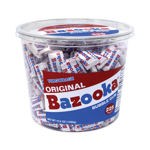 Original Bazooka® Bubble Gum is one of a kind. Each piece of gum is bursting with delicious, sugary flavor that is sure to satisfy your sweet tooth. Unwrap each piece for fun games and puzzles as well as digital codes that unlock exclusive online content. Shelf stable gum makes a great pantry item, perfect treat to have around the house. With 225 pieces in this bulk tub, there is plenty for the candy buffet, gift bags or to stuff the pinata at your next birthday party.Note: This is a non-returnable item.