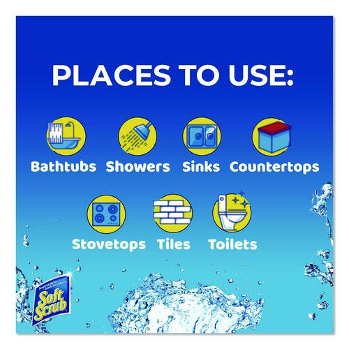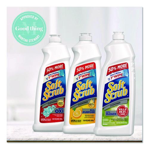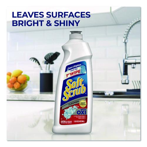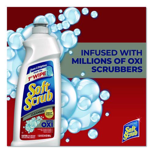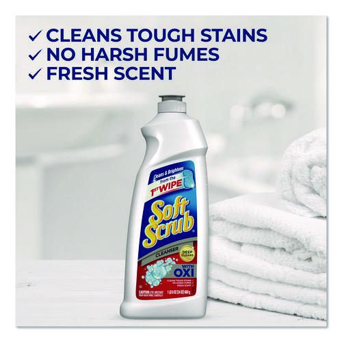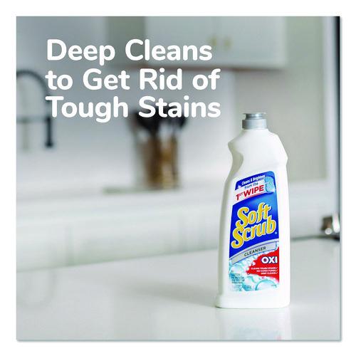 Cleanser is infused with millions of Oxi scrubbers that activate while you clean. Eliminates dirt, soap scum and mildew stains and keeps glass sparkling. Soft Scrub® Oxi Cleanser gives you a deep clean by penetrating the stain, resulting in a shiny clean surface. Cuts through whatever you can cook up, including kitchen grease, oil and grime. Safely cleans most countertops without scratching. Formulated for use on surfaces throughout the kitchen and bathroom, cleanser removes wine coffee, juice, and tea stains as well as many other stains. Makes grout cleaning easy and leaves tiles gleaming. Keeps toilets sparkling clean.