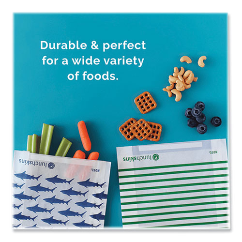 Finally, a disposable XL sandwich bag you can feel good about using, and the box is designed to fit perfectly in your kitchen drawer. Remove the self-adhesive closure strip to seal in freshness. This durable and naturally grease-resistant paper bag by LunchSkins is recyclable and sealable. Great for subs, hoagies, baguettes, hero sandwiches, and much more. Use at home or on the go.