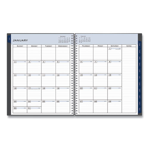 Add sophisticated appeal to your planning tasks with the Passages sleek and professional weekly/monthly planner. Flexible weekly spreads feature an open-format design with ample space for daily appointments, tasks and takeaways. For longer-range planning, the tabbed monthly views provide all the basics plus a separate ruled space for important notations. Six past-year, untabbed monthly spreads help you transition into the new year, while additional pages for yearly goals, contacts, important dates and more help you stay on track. Durable, twin-wire binding allows the book to lie flat when open, and thick, high-quality paper stock minimizes the potential for ink bleed through.Note: This is a non-returnable item.