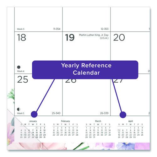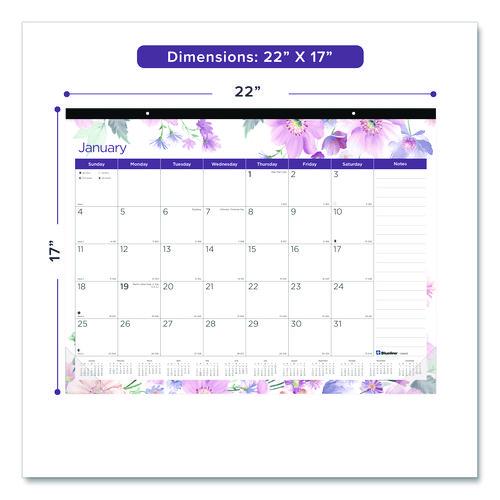 Professional desk pad calendar with bold, easy-to-read dates. One month per page, one block per day. Reinforced chipboard back and vinyl corners. Tear-off sheets, bound at top. Features a generous notes area and a yearly reference calendar at the bottom of each sheet.Note: This is a non-returnable item.