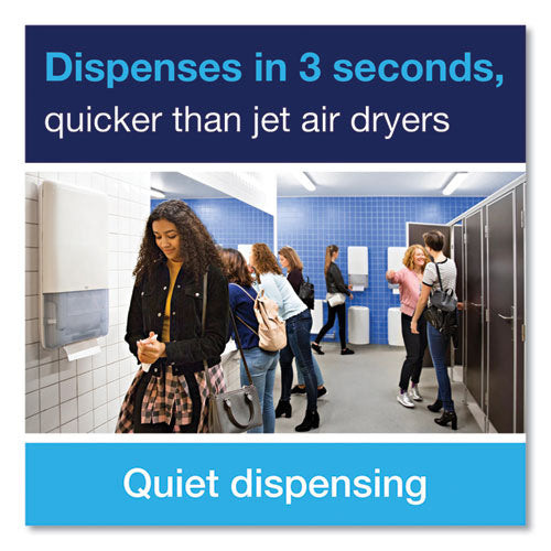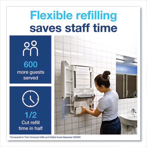 Tork® PeakServe® Continuous® Hand Towel Dispenser is the latest innovation designed for high-traffic washrooms where staff needs to maximize cleaning time and maintain a good flow of guests. Compatible with Tork PeakServe Continuous hand towels, the system offers very high capacity, which can be dispensed quickly and without interruption to keep the flow. The compressed refills are fast to fill, can be topped up at any time and are easy to store and transport, enabling staff to focus on cleaning, not refilling. Towels served in three seconds for washroom flow with no hold ups for guests. Compression means more hand towels, preventing unexpected run outs as compared to traditional towel systems. Top up with hand towels when it suits you. More flexibility means more time to clean. Taking a towel is always smooth and easy with our patented Continuous hand towel system. EasyCube® compatible.