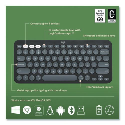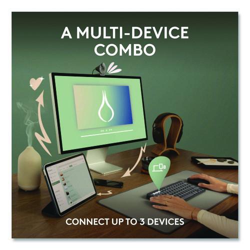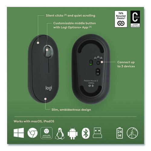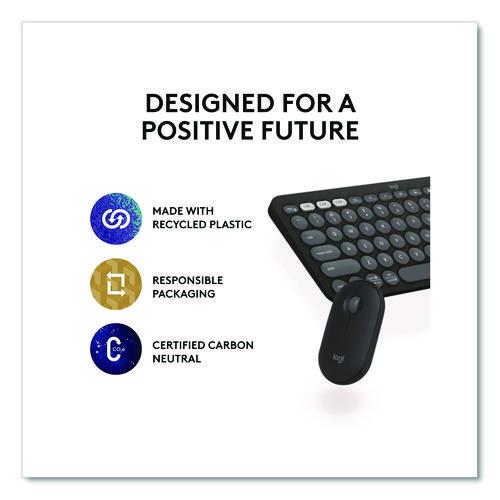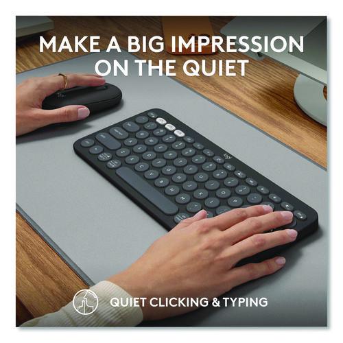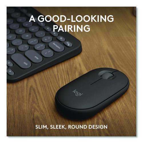 Defy boring with the Logitech® Pebble 2 Combo. A minimalist, slim design makes this combo as iconic as you and super portable. Pair up to three wireless devices and easily switch between them with a press of a button. Use the products your way with the customizable Function shortcut keys and mouse button.Package Includes: Important Info Document (IID); Receiver; User Documentation; Warranty Card