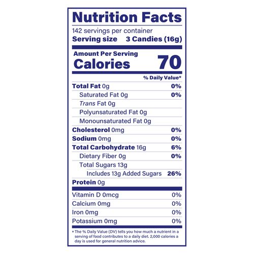 Individually wrapped red and white Peppermint Starlight Mints with a white center are the perfect after-dinner palate cleanser and a great sweet treat anytime. Ideal for the candy dish, candy buffets, and holiday crafting, too. Approximately 100 pieces per pound.Note: This is a non-returnable item.