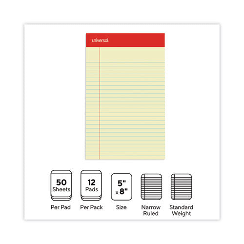 Perforated Ruled Writing Pads, Narrow Rule, Red Headband, 50 Canary-Yellow 5 x 8 Sheets, Dozen