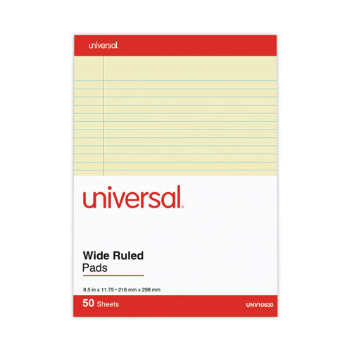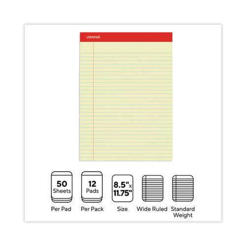 Perforated Ruled Writing Pads, Wide/Legal Rule, Red Headband, 50 Canary-Yellow 8.5 x 11.75 Sheets, Dozen