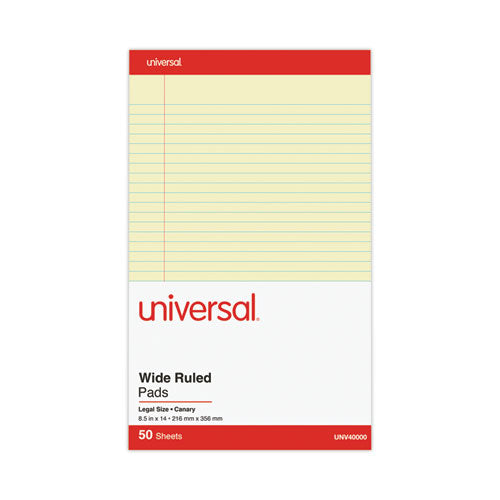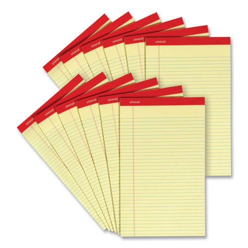 Perforated Ruled Writing Pads, Wide/Legal Rule, Red Headband, 50 Canary-Yellow 8.5 x 14 Sheets, Dozen
