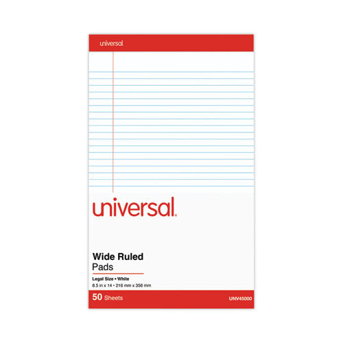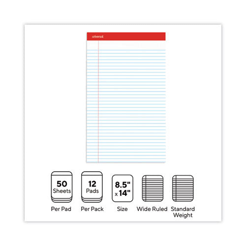 Perforated Ruled Writing Pads, Wide/Legal Rule, Red Headband, 50 White 8.5 x 14 Sheets, Dozen