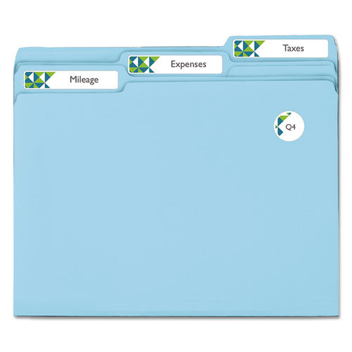 This is the mark of a true professional. Use these file folder labels with TrueBlock® technology to give ordinary folders a clean, organized look that's easy to identify. These innovative labels are designed to completely cover everything underneath, from markings to old, existing labels. Plus, these labels are guaranteed to stick and stay, without curling or lifting. And with free templates from Avery® Design & Print you can put smart label design in plain view, or add your own custom colors to create your own filing system. Simply type in text to identify folders or documents. After printing, you'll have professional-looking labels that you can spot right away. 8 1/2" x 11" sheets for laser and inkjet printers.