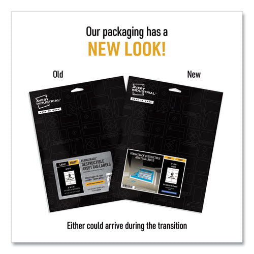 Create your own security asset tags, barcode labels, equipment tags, property tags and nameplates with a laser printer. Accurately record and monitor valuable assets such as electronics, equipment, tools, furniture, containers and more. Print on demand and as many as you need, avoiding high minimum order quantities and long lead times. Discourage theft or tampering—after allowing 24 hours for the label to set, when removal is attempted, labels break apart in fragments and cannot be reapplied. Durable material is chemical resistant and waterproof. Customize with text, graphics, serialized numbers and barcodes with the free Avery Design & Print software with barcode generator.