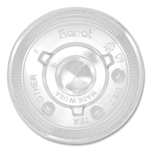 Karat® PET lids are durable, high clarity, and crack resistant. They are also recyclable and BPA free. Compatible with Karat® Cold Cups.