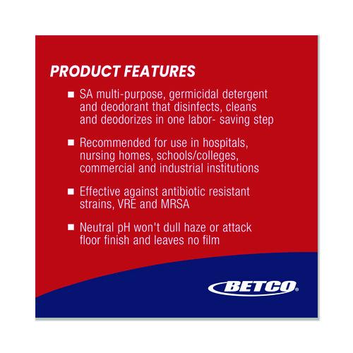 A multi-purpose, germicidal detergent and deodorant that disinfects, cleans and deodorizes in one labor-saving step. Recommended for use in hospitals, nursing homes, schools/colleges, commercial and industrial institutions. Neutral pH formula is perfect for damp mopping highly polished floors and will never dull, haze or leave a film.Note: This is a non-returnable item.