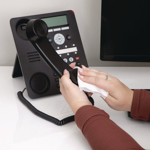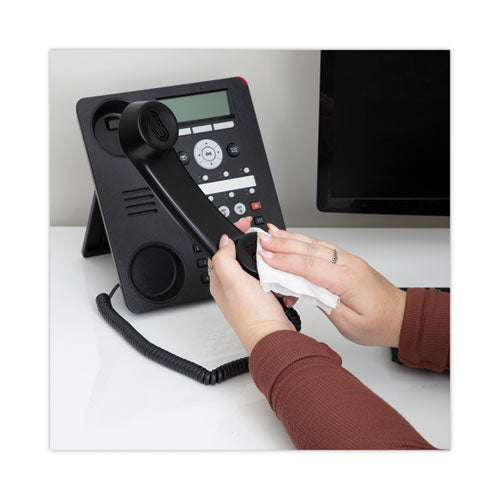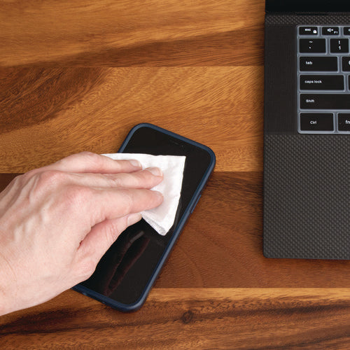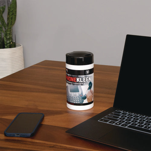 Convenient, disposable, pre-moistened wipes for cleaning smartphones, office phones, or other shared equipment. Use PhoneKleen wipes for an easy, one-step process to thoroughly clean firm, nonporous surfaces. These pre-moistened wipes are wrapped individually to preserve moisture and maximize effectiveness. Each box comes with multi-purpose wipes to use in the office, on car trips, on airplanes, in classrooms, or at home.