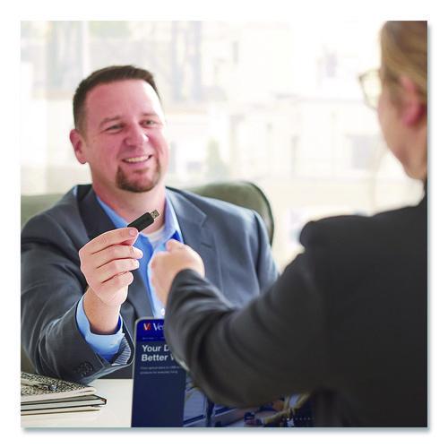 Features a retractable connector with a push-and-pull sliding feature to protect the USB connector when not in use, eliminating the need for a cap. It features a lightweight, pinstriped design. The PinStripe drive makes transporting and sharing files simple.