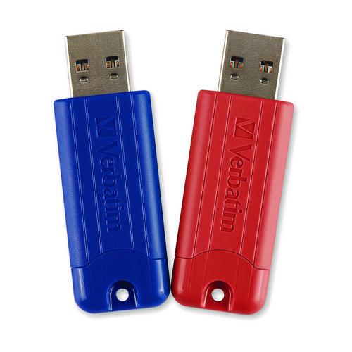 PinStripe USB 3.2 Flash Drive, 32 GB, Blue/Red, 2/Pack