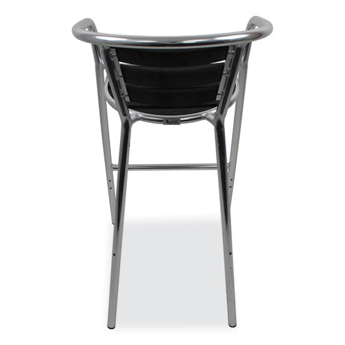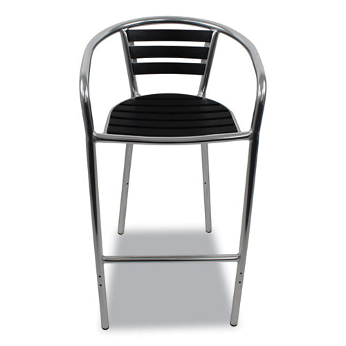 Enhance your hospitality options while you elevate the appeal of your space. Pinzon Series Barstools feature a sleek, modern design that adds an element of sophistication to your outdoor space without compromising on either comfort or durability. Sturdy and stable, their tubular steel frame with footrest delivers the reliable support required without leaving your table or bar space feeling cluttered. Slick, synthetic-slat seat and back pads are a bit more flexible than wood-slat alternatives to deliver a more comfortable "springy" feel while keeping overall maintenance low-key. Just wipe down the seat and back with a damp cloth to keep them spotless. It couldn't be easier for these stools to keep up with the demands of even the busiest food and drink establishments. Pinzon Series Barstools are also surprisingly lightweight—just about any server could effortlessly rearrange your layout as needed. Attractive, comfortable, durable and eminently versatile, these stools cover all the bases.Note: This is a non-returnable item.