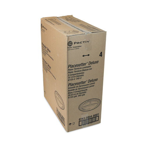 Placesetter Deluxe Laminated Foam Dinnerware, 3-Compartment Plate, 10.25" dia, White, 540/Carton