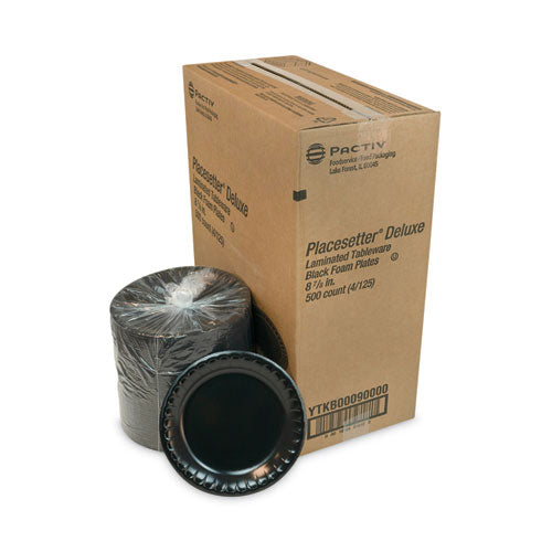 Placesetter Deluxe Laminated Foam Dinnerware, Plate, 9" dia, Black, 500/Carton