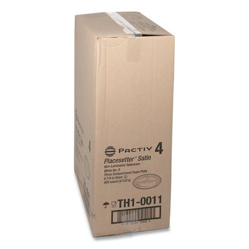 Placesetter Satin Non-Laminated Foam Dinnerware, 3-Compartment Plate, 9" dia, White, 500/Carton