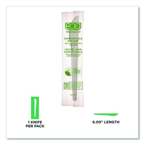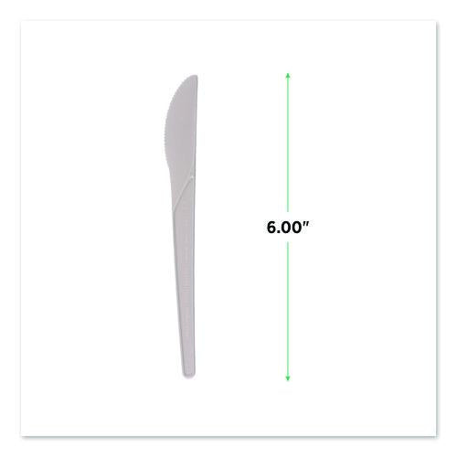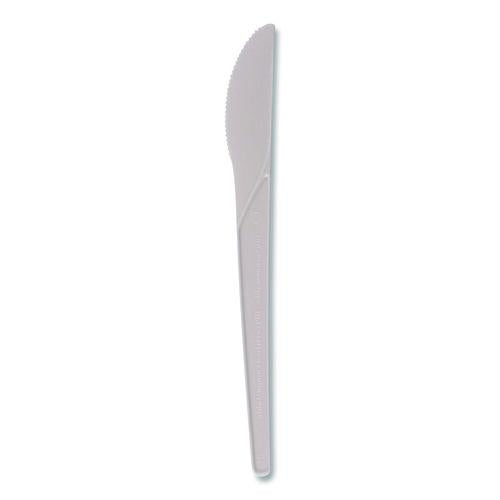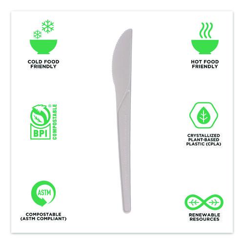 Plantware Compostable Cutlery, Knife, Plastic, White, 1,000/Carton