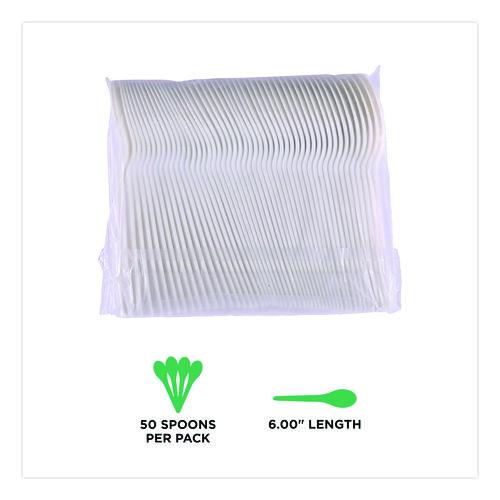Plantware Compostable Cutlery, Spoon, Plastic, Pearl White, 50/Pack, 20 Pack/Carton