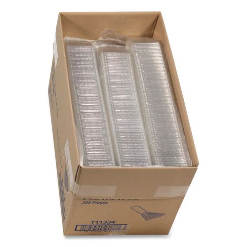 Pick the perfect portion size with sturdy plastic containers that hold a triangular half-sandwich each. Ideal for organizing neat and attractive deli displays. Half-cube packaging is designed for quick-service operations, making it easy for patrons to grab lunch on the go. An economical option for busy cafeterias.