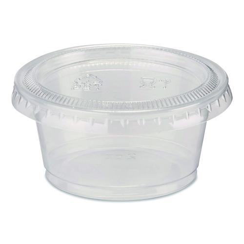 Put a lid on unsightly spills. Featuring a tight fit, the Dixie portion cup lid keeps content secure during transport and the clear color provides excellent visibility of the contents inside. Strong, reliable and cost-effective, it's made from durable PETE plastic.
