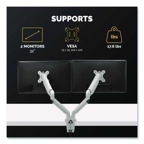 Platinum Series Dual Monitor Arm, For 40" Monitors, 360 deg Rotation, 45 deg Tilt, 180 deg Pan, Silver, Supports 17.6 lb