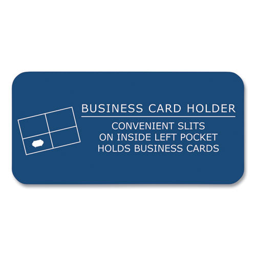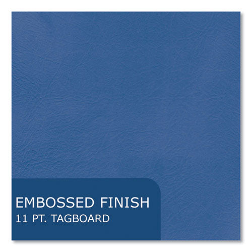 These folders have an embossed leatherette finish. The color is printed on durable white tag stock. Two inside pockets keep papers in place.Note: This is a non-returnable item.