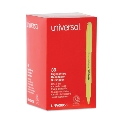 Pocket Highlighter Value Pack, Fluorescent Yellow Ink, Chisel Tip, Yellow Barrel, 36/Pack