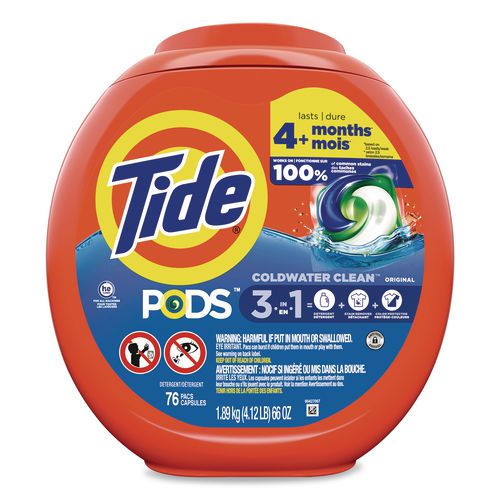 PODS Laundry Detergent, HE Compatible, Coldwater Clean Original, 66 oz Tub, 76 Pods/Tub, 4 Tubs/Carton