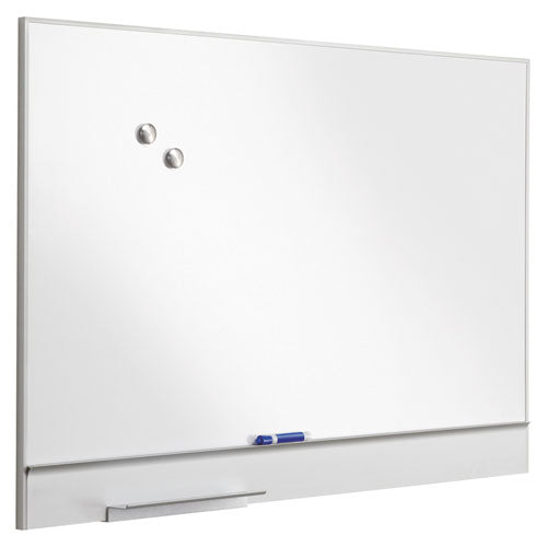 Bold, modern, modular aluminum frame design for flush side-by-side mounting. Superior coated steel surface resists ghosting and staining. Adjustable eraser tray, secure mounting channel built-in.Package Includes: Marker/Eraser Rail; Mounting KitNote: This is a non-returnable item.
