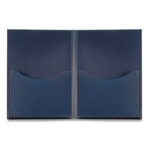 Unique gusseted design provides extra capacity without sacrificing durability. Wider, scored spine expands to hold more. Extra-high, 6-inch pockets are twice the size of those in standard folders and feature a curved design that simplifies inserting and removing papers. Available in high-gloss laminated paper or heavy-duty opaque polyethylene. Holds 200 sheets.