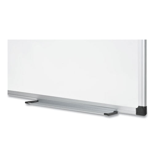 The Maya Porcelain Magnetic Dry-erase Board features a durable whiteboard surface that resists staining, ghosting and scratching to keep its bright, high-quality appearance through years of extensive use. Magnetic surface allows you to instantly post messages or attach your magnetic accessories. The professional Maya aluminum frame includes a four-corner mounting system that can be positioned either vertically or horizontally to provide versatility when reconfiguring an office or where wall space is limited. The adjustable aluminum pen tray offers a convenient way to keep your writing utensils within quick reach. This dry-erase board is perfect for classrooms, offices, training environments, meeting rooms and more.Package Includes: Aluminum Tray; (4) Corner Mounting Kit; Instructions