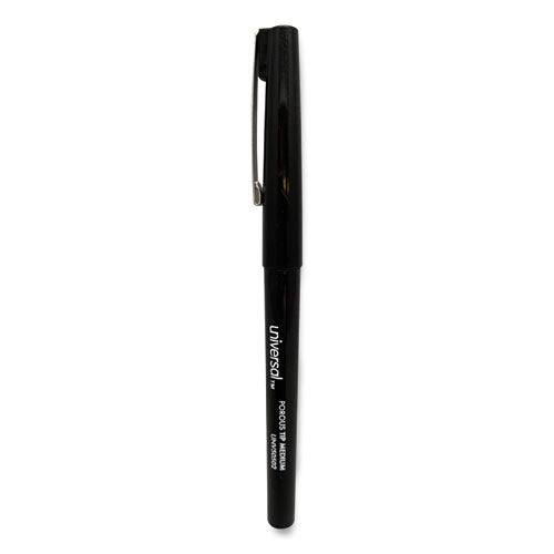 Porous Point Pen, Stick, Medium 0.7 mm, Black Ink, Black Barrel, Dozen